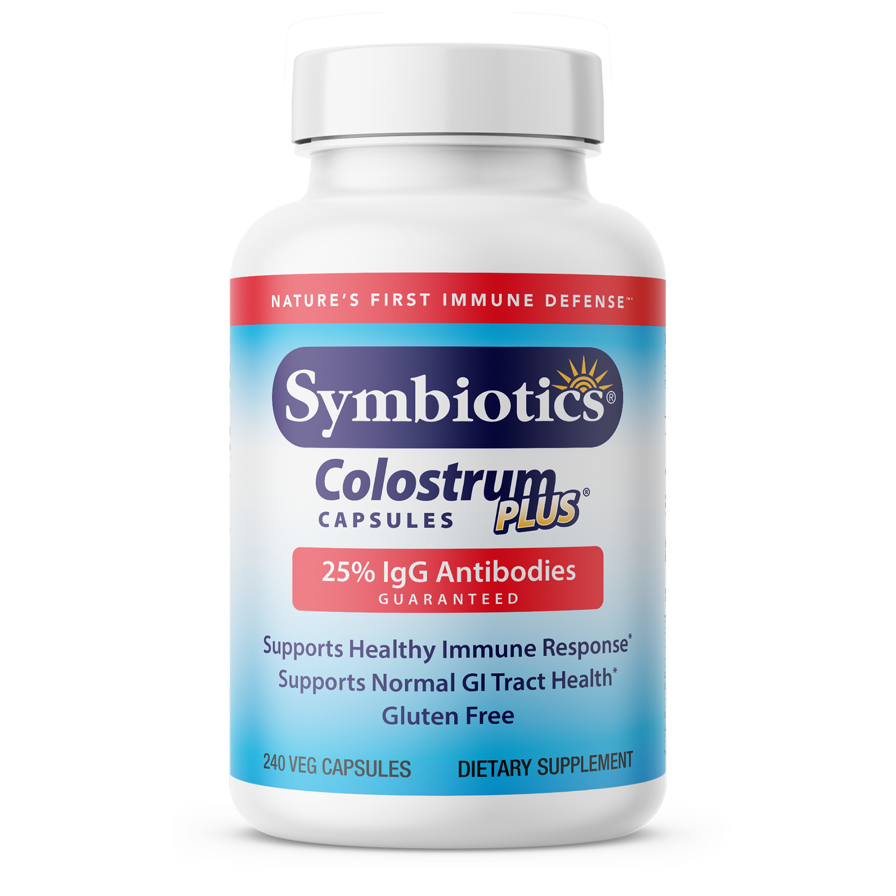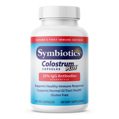 Symbiotics Colostrum Plus features key natural Immune Factors such as Immunoglobulins, which are types of proteins that are used by the immune system to identify and neutralize foreign objects, as well as Lactoferrin, which is a multifunctional protein and Proline-Rich Polypeptides, which have a very powerful effect in actively modulating the immune response.*