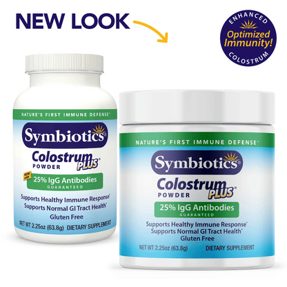 Symbiotics Colostrum Plus features key natural Immune Factors such as Immunoglobulins, which are types of proteins that are used by the immune system to identify and neutralize foreign objects, as well as Lactoferrin, which is a multifunctional protein and Proline-Rich Polypeptides, which have a very powerful effect in actively modulating the immune response.*