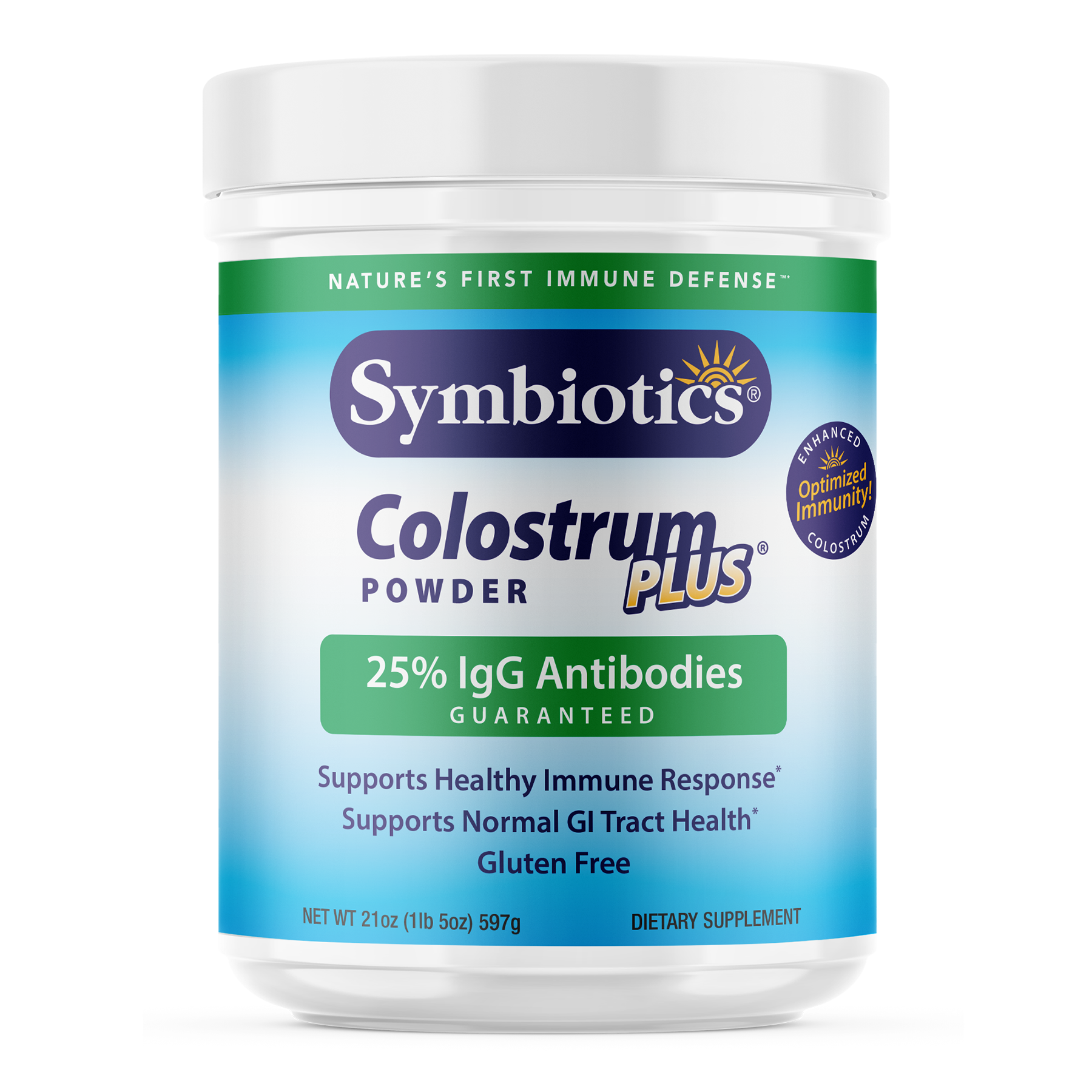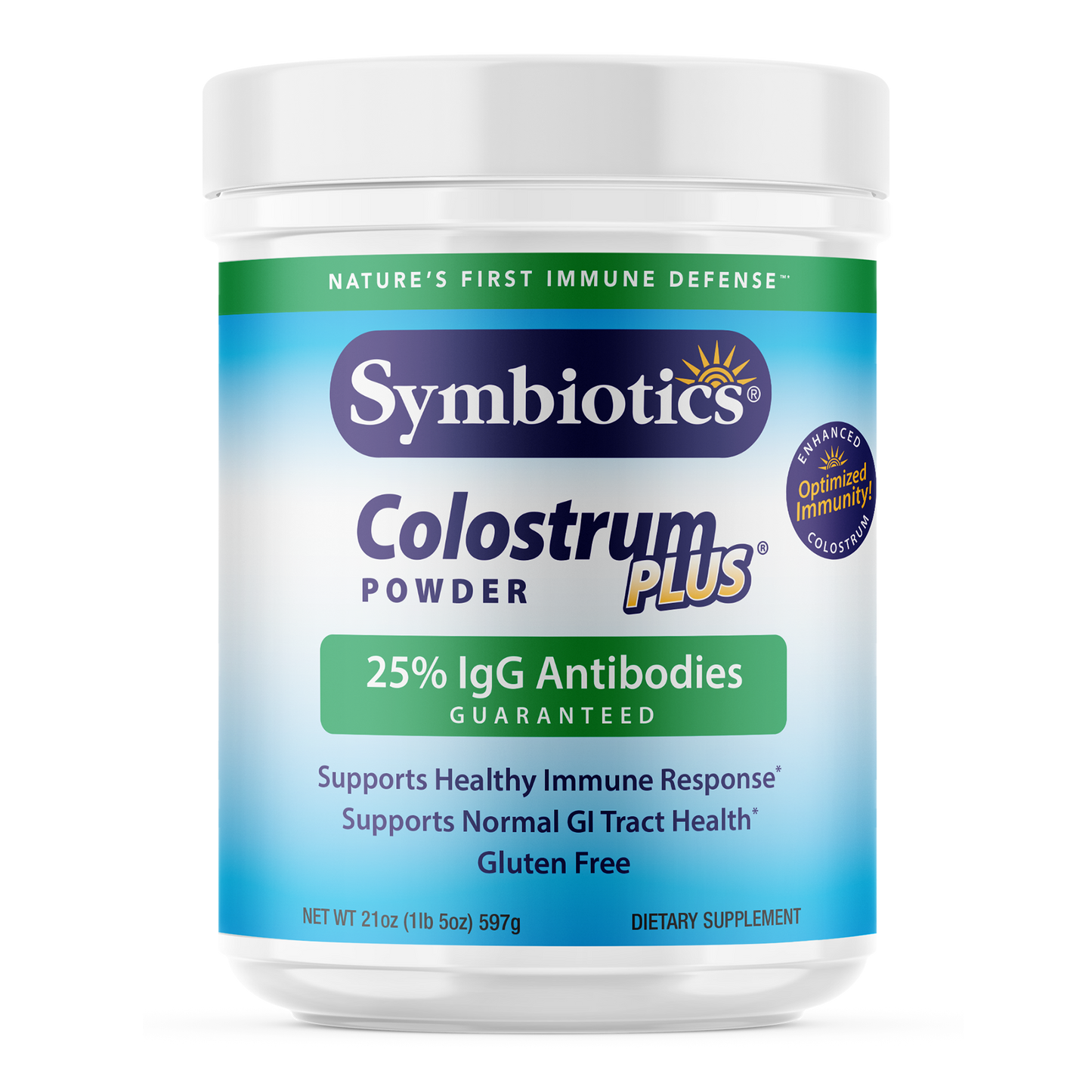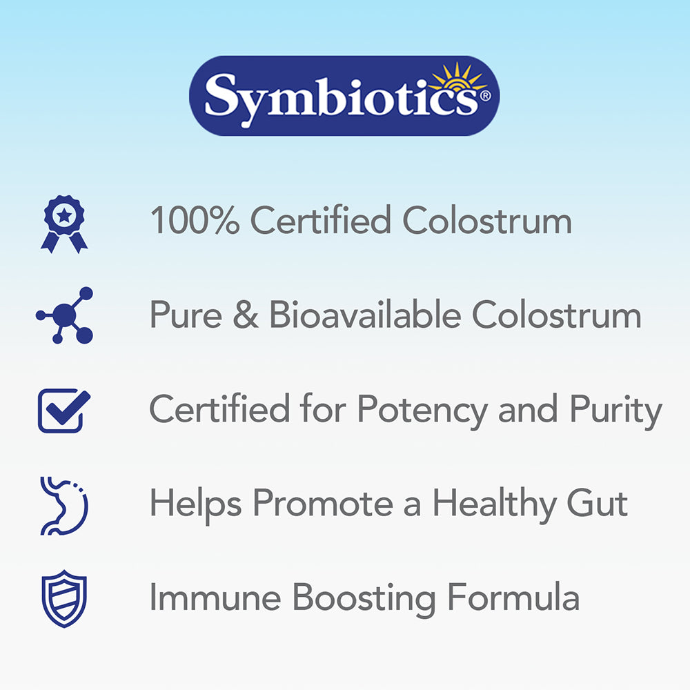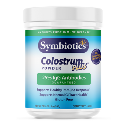 Symbiotics Colostrum Plus features key natural Immune Factors such as Immunoglobulins, which are types of proteins that are used by the immune system to identify and neutralize foreign objects, as well as Lactoferrin, which is a multifunctional protein and Proline-Rich Polypeptides, which have a very powerful effect in actively modulating the immune response.*